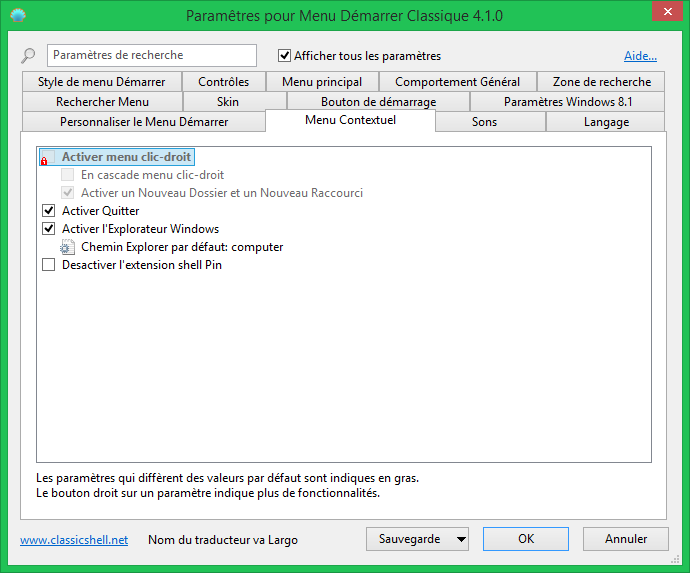 - Ne désactive pas le menu démarrer orginal de Windows. You can access it by Maj+Clic sur le bouton du menu